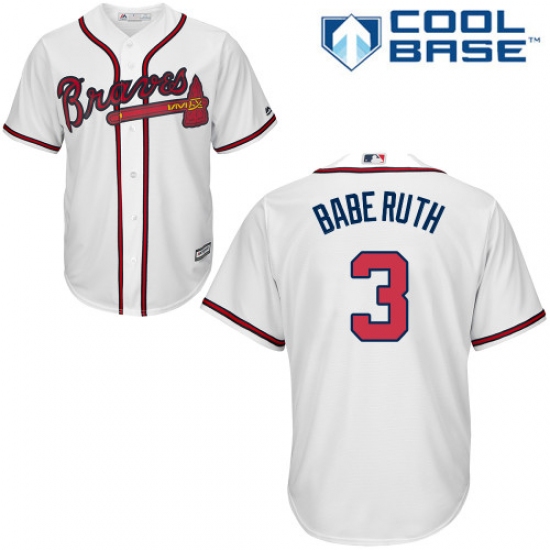 Men's Majestic Atlanta Braves #3 Babe Ruth Replica White Home Cool Base MLB Jersey