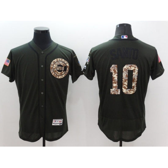 Men's Majestic Chicago Cubs #10 Ron Santo Authentic Green Salute to Service Jersey