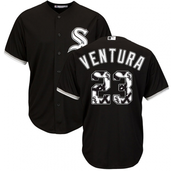 Men's Majestic Chicago White Sox #23 Robin Ventura Authentic Black Team Logo Fashion Cool Base MLB Jersey