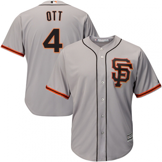 Men's Majestic San Francisco Giants #4 Mel Ott Replica Grey Road 2 Cool Base MLB Jersey