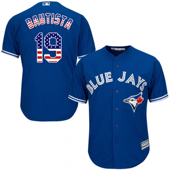 Home>MLB>Toronto Blue Jays>Jose Bautista>Men's Majestic Toronto Blue Jays #19 Jose Bautista Authentic Royal Blue USA Flag Fashion MLB Jersey