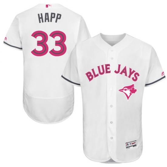 Home>MLB>Toronto Blue Jays>J.A. Happ>Men's Majestic Toronto Blue Jays #33 J.A. Happ Authentic White 2016 Mother's Day Fashion Flex Base MLB Jersey