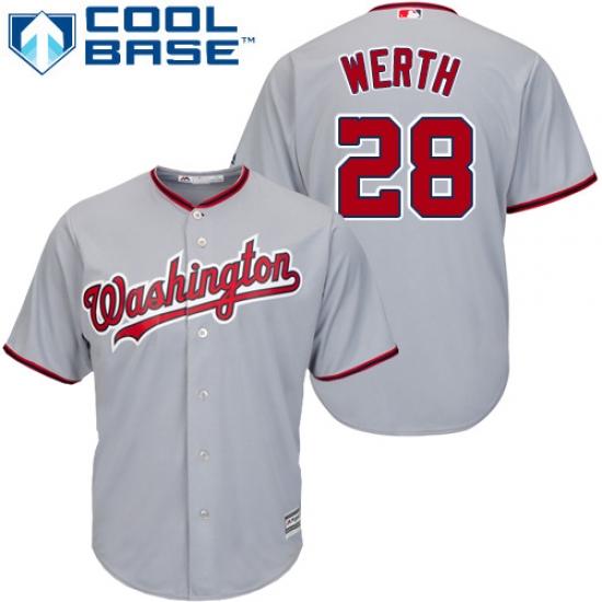 Home>MLB>Washington Nationals>Jayson Werth>Men's Majestic Washington Nationals #28 Jayson Werth Replica Grey Road Cool Base MLB Jersey
