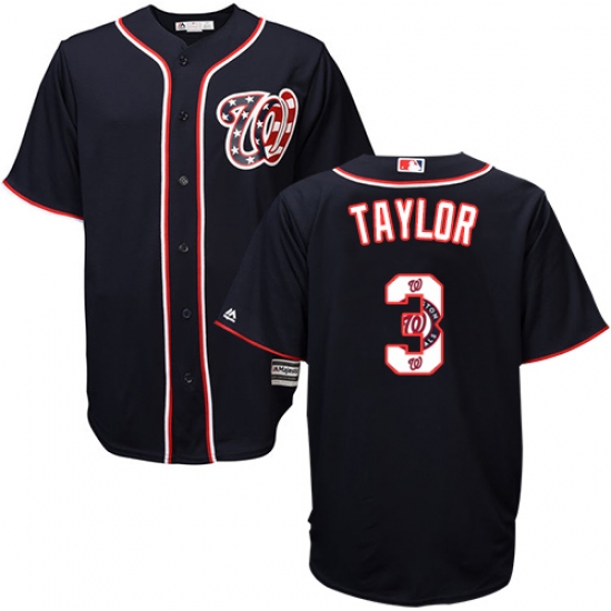 Home>MLB>Washington Nationals>Michael Taylor>Men's Majestic Washington Nationals #3 Michael Taylor Authentic Navy Blue Team Logo Fashion Cool Base MLB Jersey