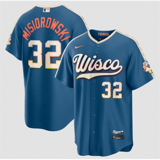 >Men's Milwaukee Brewers #32 Jacob Misiorowski Mineral Blue 2026 City Connect Stadium Stitched Stitched Baseball Jersey