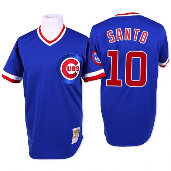 Men's Mitchell and Ness Chicago Cubs #10 Ron Santo Replica Blue Throwback MLB Jersey