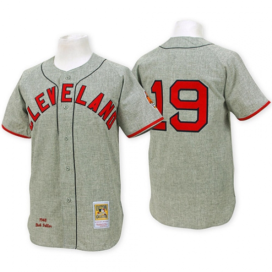 Men's Mitchell and Ness Cleveland Indians #19 Bob Feller Replica Grey Throwback MLB Jersey