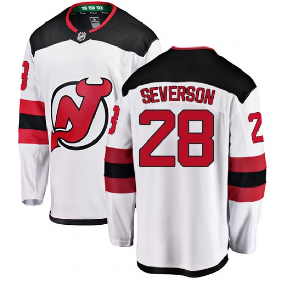 Home>NHL>New Devils Jersey>Damon Severson>Men's New Jersey Devils #28 Damon Severson Fanatics Branded White Away Breakaway NHL Jersey