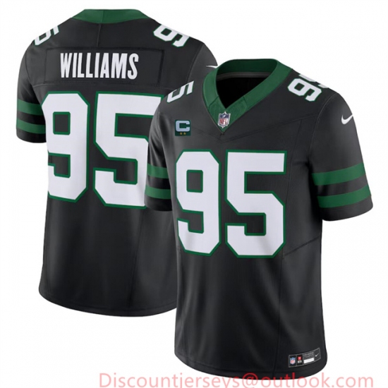 Men's New York Jets #95 Quinnen Williams Black 2024 F.U.S.E. With 2-Star C Vapor Limited Stitched Jersey