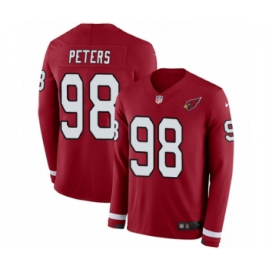 >Men's Nike Arizona Cardinals #98 Corey Peters Limited Red Therma Long Sleeve NFL Jersey