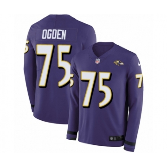 Men's Nike Baltimore Ravens #75 Jonathan Ogden Limited Purple Therma Long Sleeve NFL Jersey