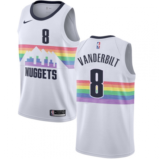 >Men's Nike Denver Nuggets #8 Jarred Vanderbilt Swingman White NBA Jersey - City Edition