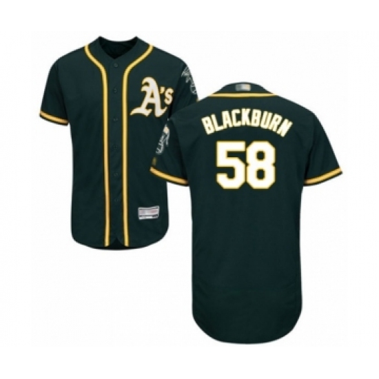 >Men's Oakland Athletics #58 Paul Blackburn Green Alternate Flex Base Authentic Collection Baseball Player Jersey