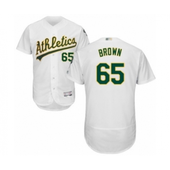 >Men's Oakland Athletics #65 Seth Brown White Home Flex Base Authentic Collection Baseball Player Jersey
