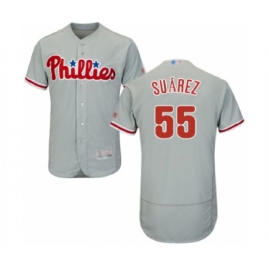 Men's Philadelphia Phillies #55 Ranger Suarez Grey Road Flex Base Authentic Collection Baseball Player Jersey