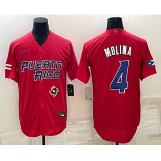 Men's Puerto Rico Baseball #4 Yadier Molina 2023 Red World Baseball Classic Stitched Jersey