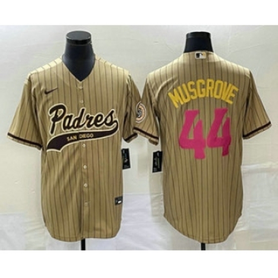 Men's San Diego Padres #44 Joe Musgrove Tan Pinstripe 2023 City Connect Cool Base Stitched Jersey 1