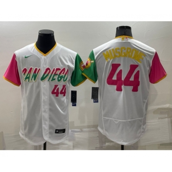 >Men's San Diego Padres #44 Joe Musgrove White Number 2022 City Connect Flex Base Stitched Jersey