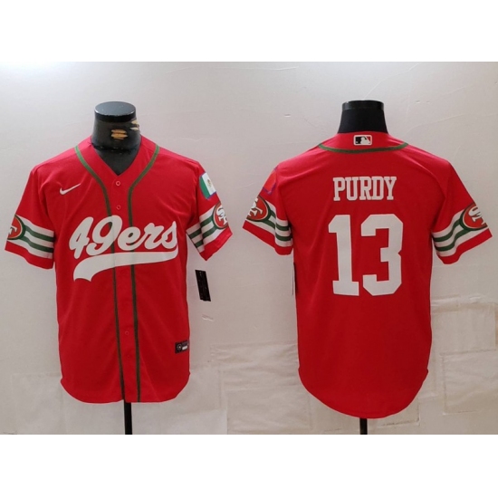 >Men's San Francisco 49ers #13 Brock Purdy Red Mexico Cool Base Stitched Baseball Jersey