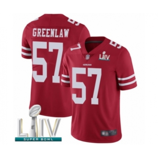 Men's San Francisco 49ers #57 Dre Greenlaw Red Team Color Vapor Untouchable Limited Player Super Bowl LIV Bound Football Jersey