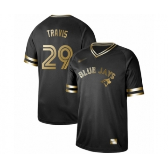 >Men's Toronto Blue Jays #29 Devon Travis Authentic Black Gold Fashion Baseball Jersey