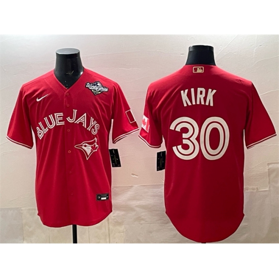 >Men's Toronto Blue Jays #30 Alejandro Kirk Red 2025 World Series Cool Base Stitched Baseball Jersey