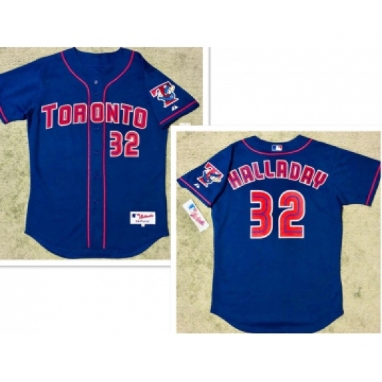 >Men's Toronto Blue Jays #32 Roy Halladay Alternate Blue MLB Jersey