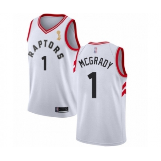 Men's Toronto Raptors #1 Tracy Mcgrady Swingman White 2019 Basketball Finals Champions Jersey - Association Edition