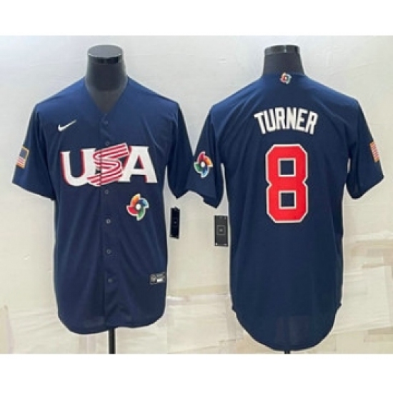 Men's USA Baseball #8 Trea Turner 2023 Navy World Baseball Classic Stitched Jersey