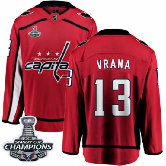 Men's Washington Capitals #13 Jakub Vrana Fanatics Branded Red Home Breakaway 2018 Stanley Cup Final Champions NHL Jersey