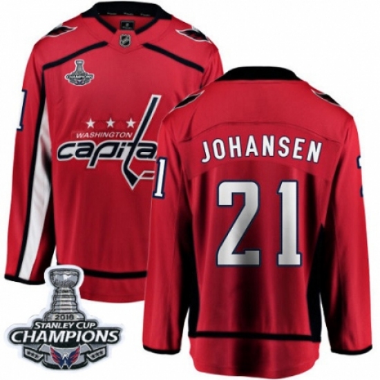 Men's Washington Capitals #21 Lucas Johansen Fanatics Branded Red Home Breakaway 2018 Stanley Cup Final Champions NHL Jersey
