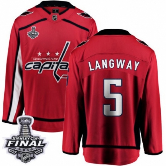Men's Washington Capitals #5 Rod Langway Fanatics Branded Red Home Breakaway 2018 Stanley Cup Final NHL Jersey