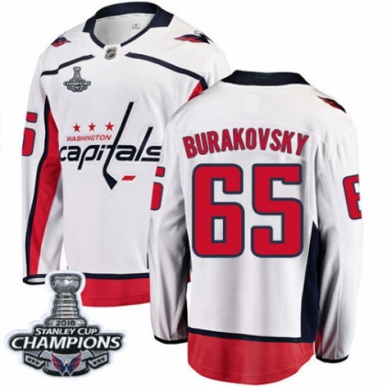 Men's Washington Capitals #65 Andre Burakovsky Fanatics Branded White Away Breakaway 2018 Stanley Cup Final Champions NHL Jersey
