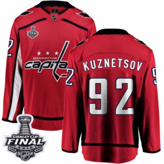 Men's Washington Capitals #92 Evgeny Kuznetsov Fanatics Branded Red Home Breakaway 2018 Stanley Cup Final NHL Jersey