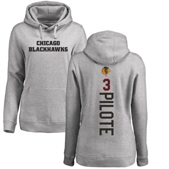 NHL Women's Adidas Chicago Blackhawks #3 Pierre Pilote Ash Backer Pullover Hoodie