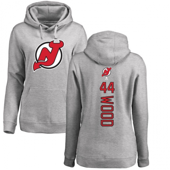 NHL Women's Adidas New Jersey Devils #44 Miles Wood Ash Backer Pullover Hoodie