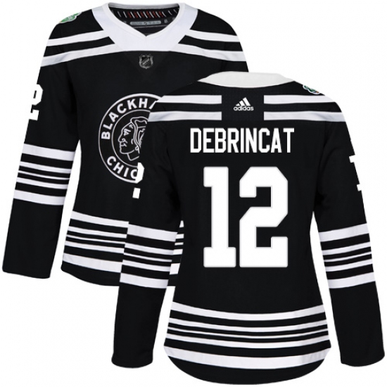 Women's Adidas Chicago Blackhawks #12 Alex DeBrincat Authentic Black 2019 Winter Classic NHL Jersey