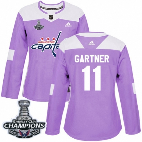 Women's Adidas Washington Capitals #11 Mike Gartner Authentic Purple Fights Cancer Practice 2018 Stanley Cup Final Champions NHL Jersey