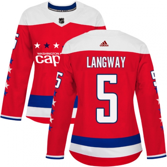 >Women's Adidas Washington Capitals #5 Rod Langway Authentic Red Alternate NHL Jersey