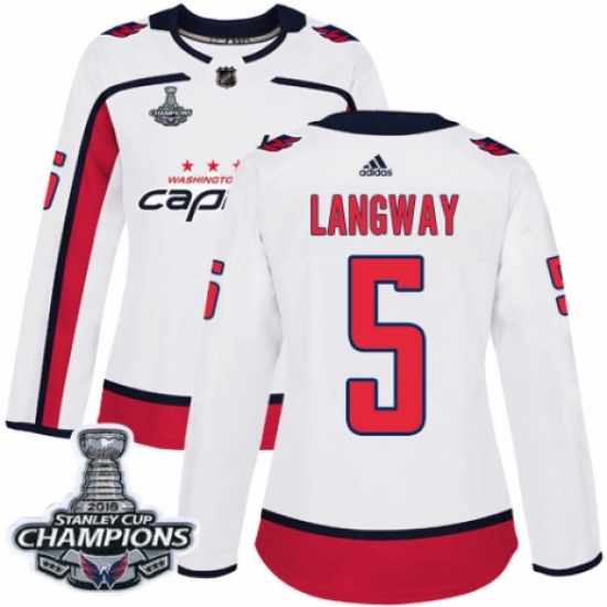 Women's Adidas Washington Capitals #5 Rod Langway Authentic White Away 2018 Stanley Cup Final Champions NHL Jersey
