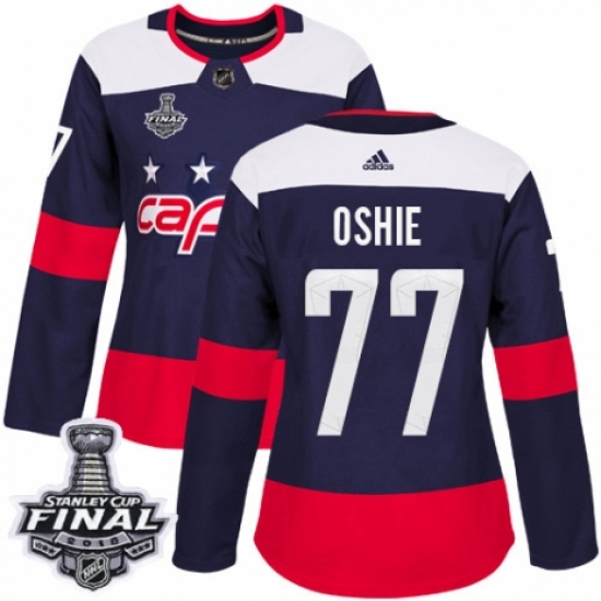 >Women's Adidas Washington Capitals #77 T.J. Oshie Authentic Navy Blue 2018 Stadium Series 2018 Stanley Cup Final NHL Jersey