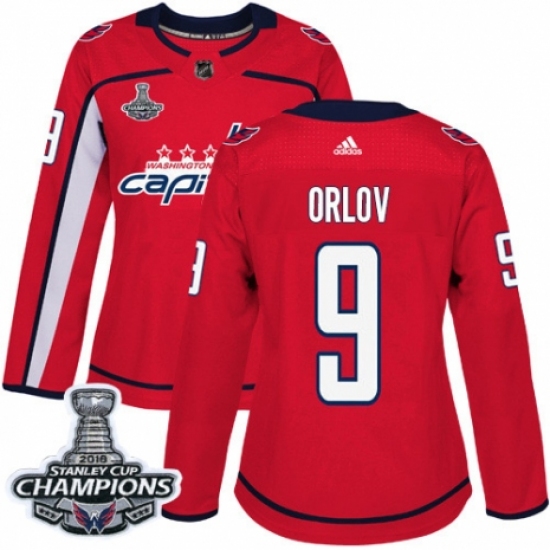 >Women's Adidas Washington Capitals #9 Dmitry Orlov Authentic Red Home 2018 Stanley Cup Final Champions NHL Jersey