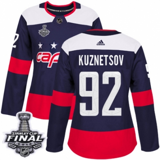 Women's Adidas Washington Capitals #92 Evgeny Kuznetsov Authentic Navy Blue 2018 Stadium Series 2018 Stanley Cup Final NHL Jersey