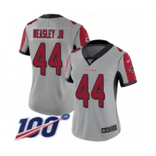 >Women's Atlanta Falcons #44 Vic Beasley Limited Silver Inverted Legend 100th Season Football Jersey