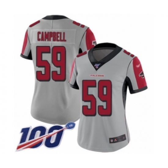 Women's Atlanta Falcons #59 De'Vondre Campbell Limited Silver Inverted Legend 100th Season Football Jersey
