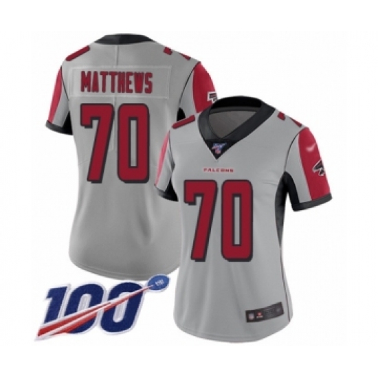>Women's Atlanta Falcons #70 Jake Matthews Limited Silver Inverted Legend 100th Season Football Jersey