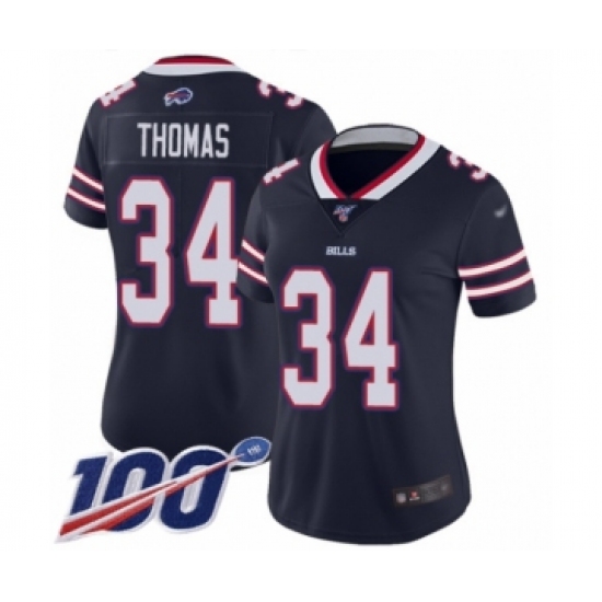 >Women's Buffalo Bills #34 Thurman Thomas Limited Navy Blue Inverted Legend 100th Season Football Jersey