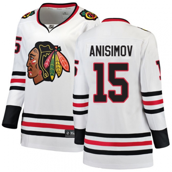 Women's Chicago Blackhawks #15 Artem Anisimov Authentic White Away Fanatics Branded Breakaway NHL Jersey