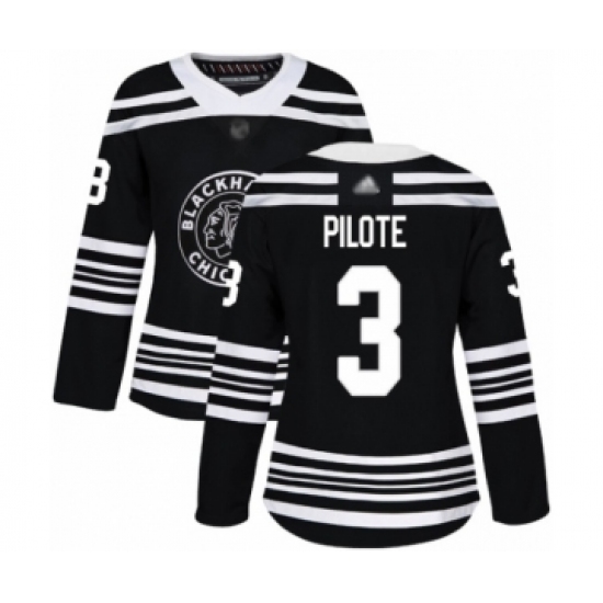 >Women's Chicago Blackhawks #3 Pierre Pilote Authentic Black Alternate Hockey Jersey