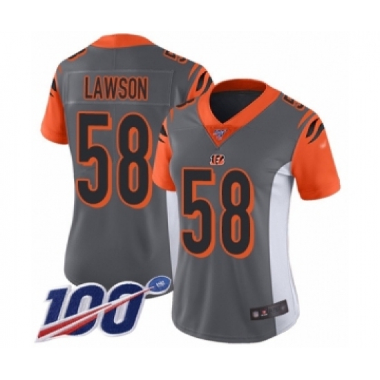 Women's Cincinnati Bengals #58 Carl Lawson Limited Silver Inverted Legend 100th Season Football Jersey